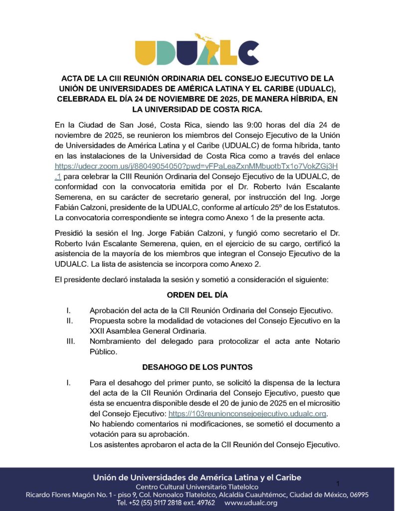 CIV Reunión Ordinaria del Consejo Ejecutivo Reunión híbrida Fecha: 13 y 14 de abril de 2026 Hora: 09:00 a 16:00 horas (México) Sede: Universidad Nacional Autónoma de México Ubicación: Unidad de Seminarios Dr. Ignacio Chavez
